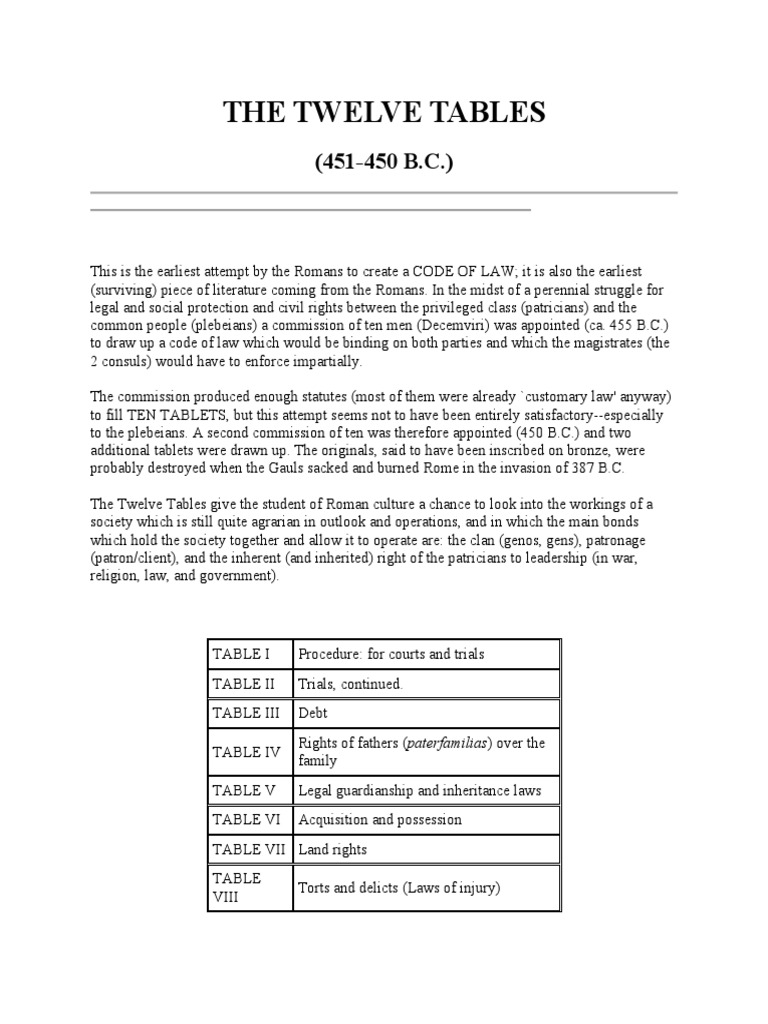 The Impact Of Codification Of Laws Schoolworkhelper - The twelve tables were written in 451 bc.